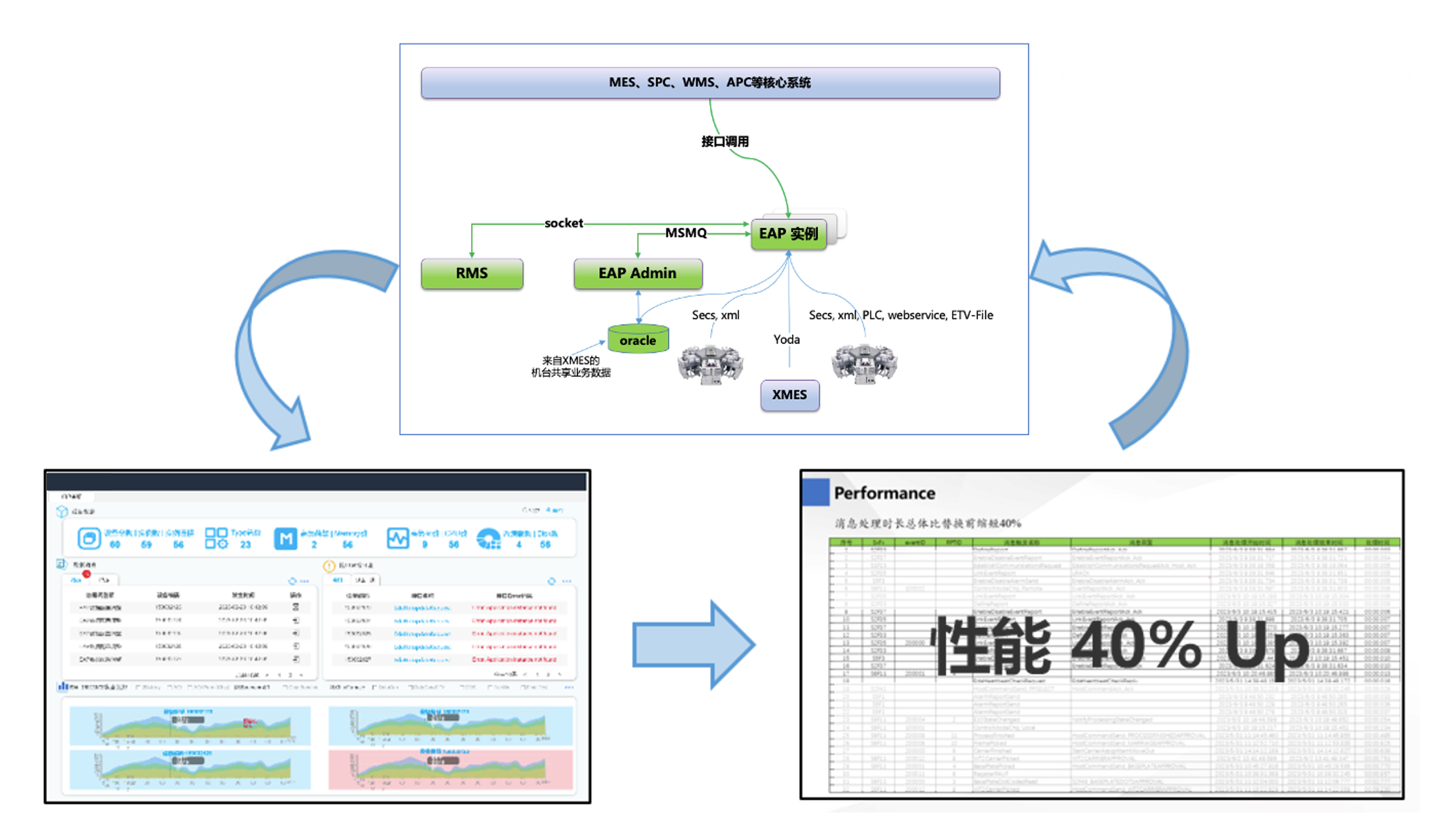 The EAP system supports no-downtime updates and version changes, greatly improving equipment utilization and capacity;