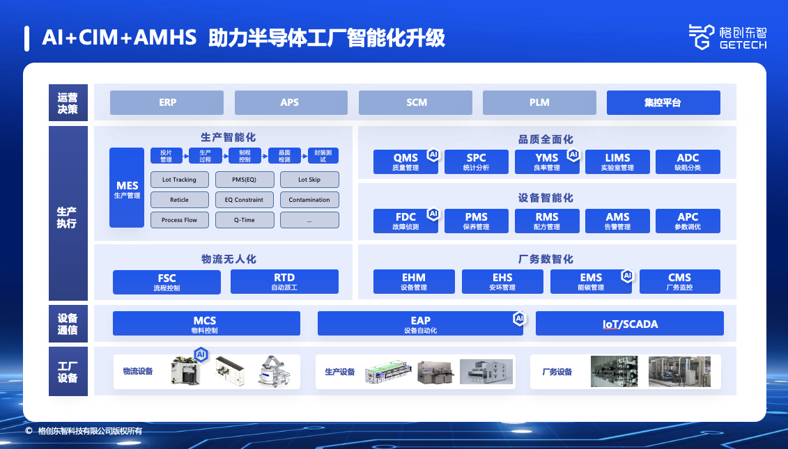 基于40余年TCL所在的泛半导体制造业Know-How沉淀,恒行5凭借“AI+工业软件+智能装备”的融合战略,集中展示了其赋能半导体制造的“AI+CIM+AMHS”软硬一体解决方案。从成果上看,该解决方案已在8吋、12吋晶圆厂及封测厂实施交付,助力半导体工厂实现全制程 100%质量追溯,关键设备稼动率提升20%以上,直接提升产线的产能与经济效益。值得关注的是,公司已成功在数十家中国头部半导体企业成功交付了建厂、爬坡、扩产等多阶段的数智化项目,客户满意度达 100%。