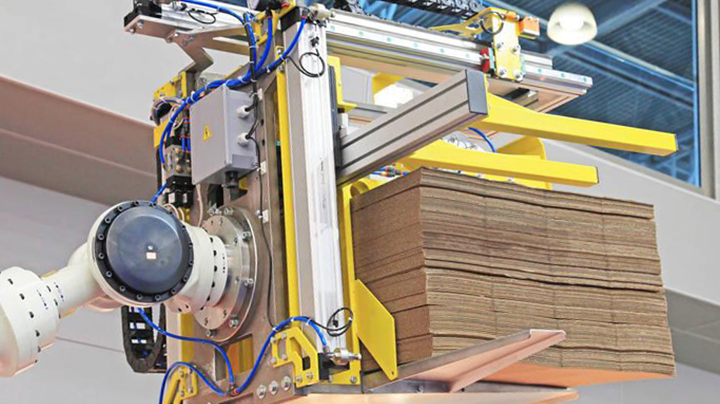 和码垛机器人共用,逆向运转来进行自动化作业 根据现场产能状况可以独立配置码垛机器人单元